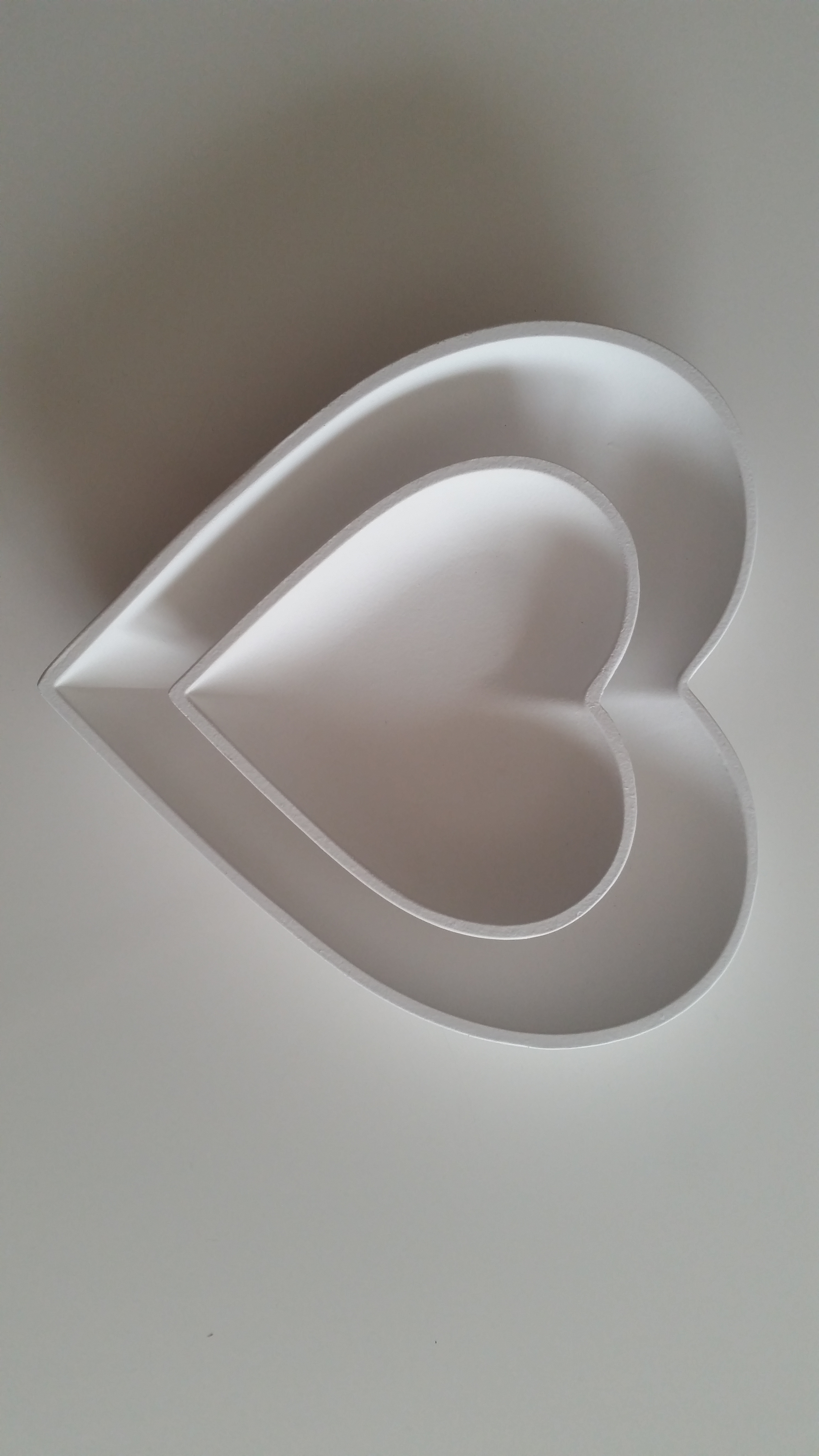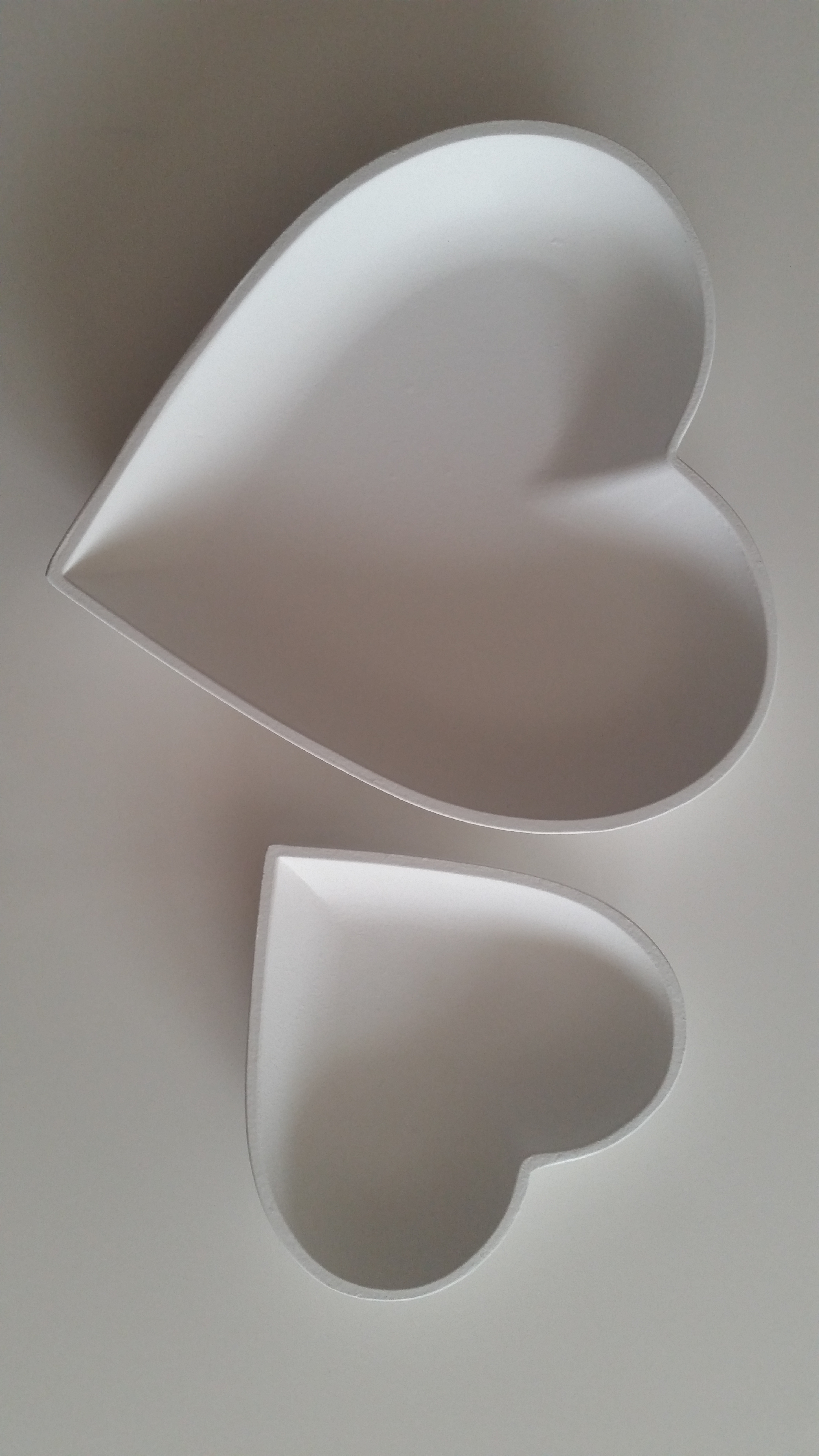 Posodici v obliki srca sem kupila danes. S sestro sva šli v Tedi in seveda sem spet nekaj našla. Ne vem še točno, kaj bom z njim, čemu bosta služili, a sta mi bili res luštni in popolni za poroko. Cena velike je bila 4,50eur in manjše 2,30eur. Menda so jih komaj dobili, tako da so trenutno še na zalogi. Razmišljala sem, čemu bi lahko služili… Mogoče za prstane, za naprsne šopke, za konfete, za riž ali cvetne lističe, mogoče posvetila, želje, misli… Nešteto je variant za kaj jih lahko uporabita. Jaz jima doma dala še nekaj časa in vem, da bosta na koncu dobili ravno pravšnjo funkcijo.