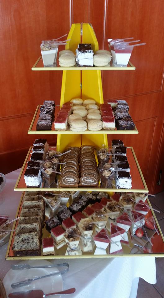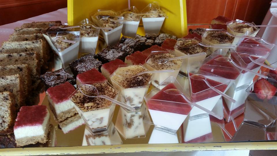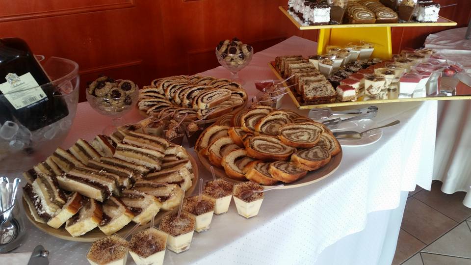 In pecivo? Nastalo je 13 vrst sočnega peciva in le dve vrsti piškotov, ki pa so bili zelo kremasti. Naredila sem potratno potico, ki je presegla celo potratno potico moje babice in, ki jo pohvalijo tudi babice, stare tete in ome, tiste, katerih mnenje največ šteje in potico z nadevom prekmurske gibanice. Pri pecivih je bilo mogoče izbirati: skutine kocke z jagodnim pirejem, browniji z maslenimi keksi, kinder pingui, bananin kruh, orehova rulada s kislo smetano, tiramisu piškoti, huzarski krapki, cakepopsi, štiri vrste sladkih skodelic: tiramisu, panna cotta z jagodnim pirejem, capuccino cotta s karamelno kremo, čokoladni mousse s karamelno kremo in lešniki. Moja babi pa je poskrbela za orehovo in čokoladno potico.