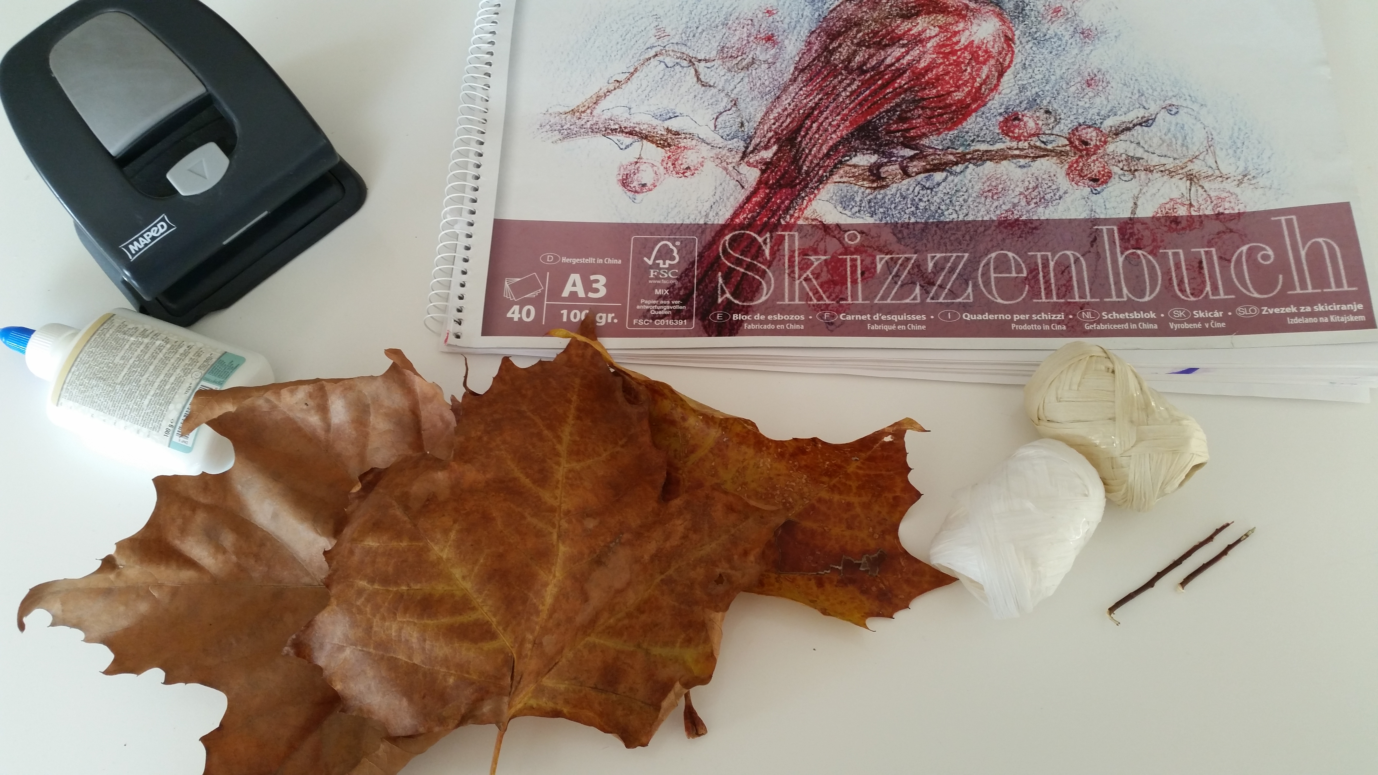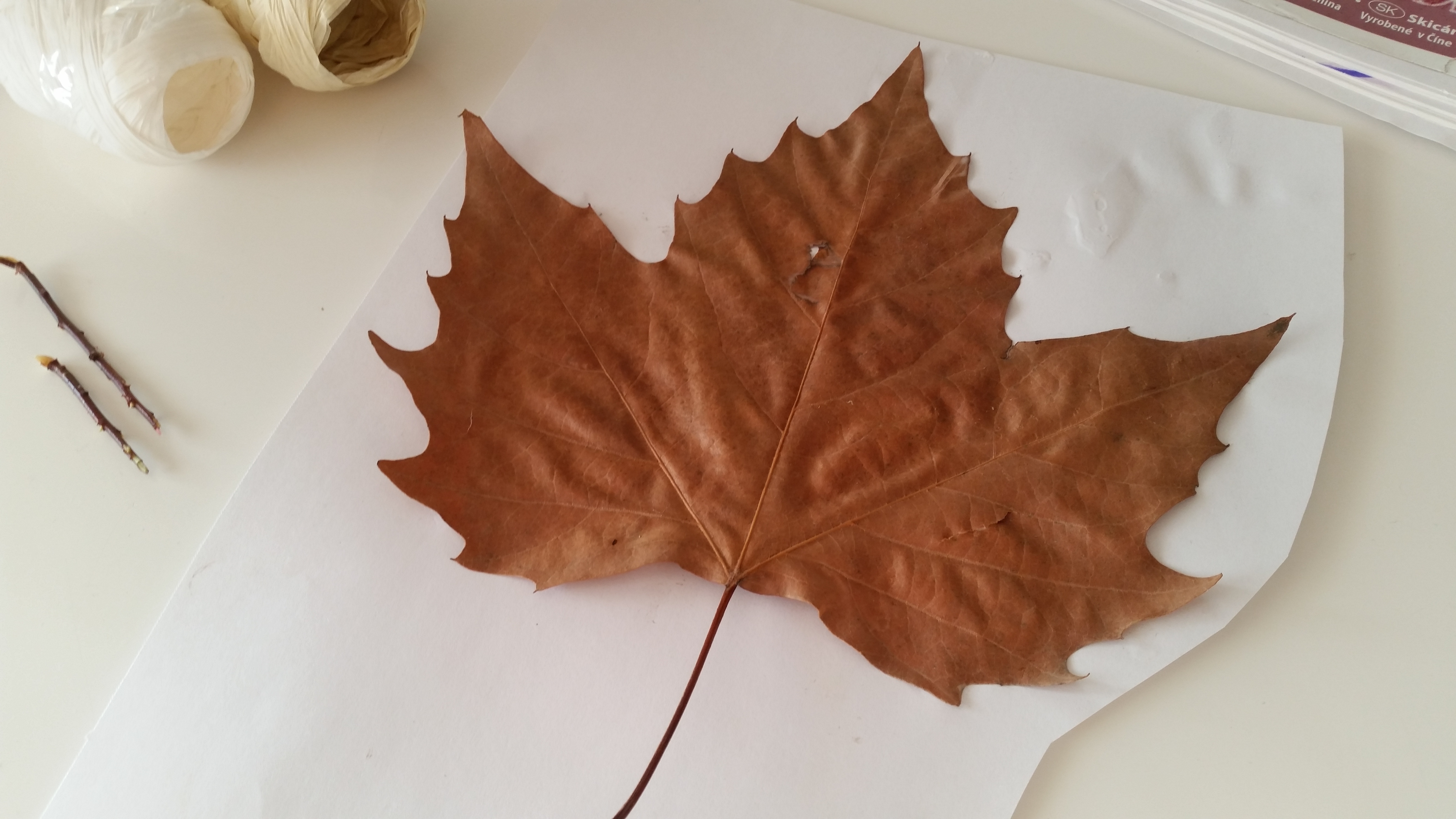 Pojdite ven, naberite nekaj res lepih, velikih jesenskih listov; najboljši so od javorja, divjega kostanja in podobnih listavcev in se lotita ustvarjanja.