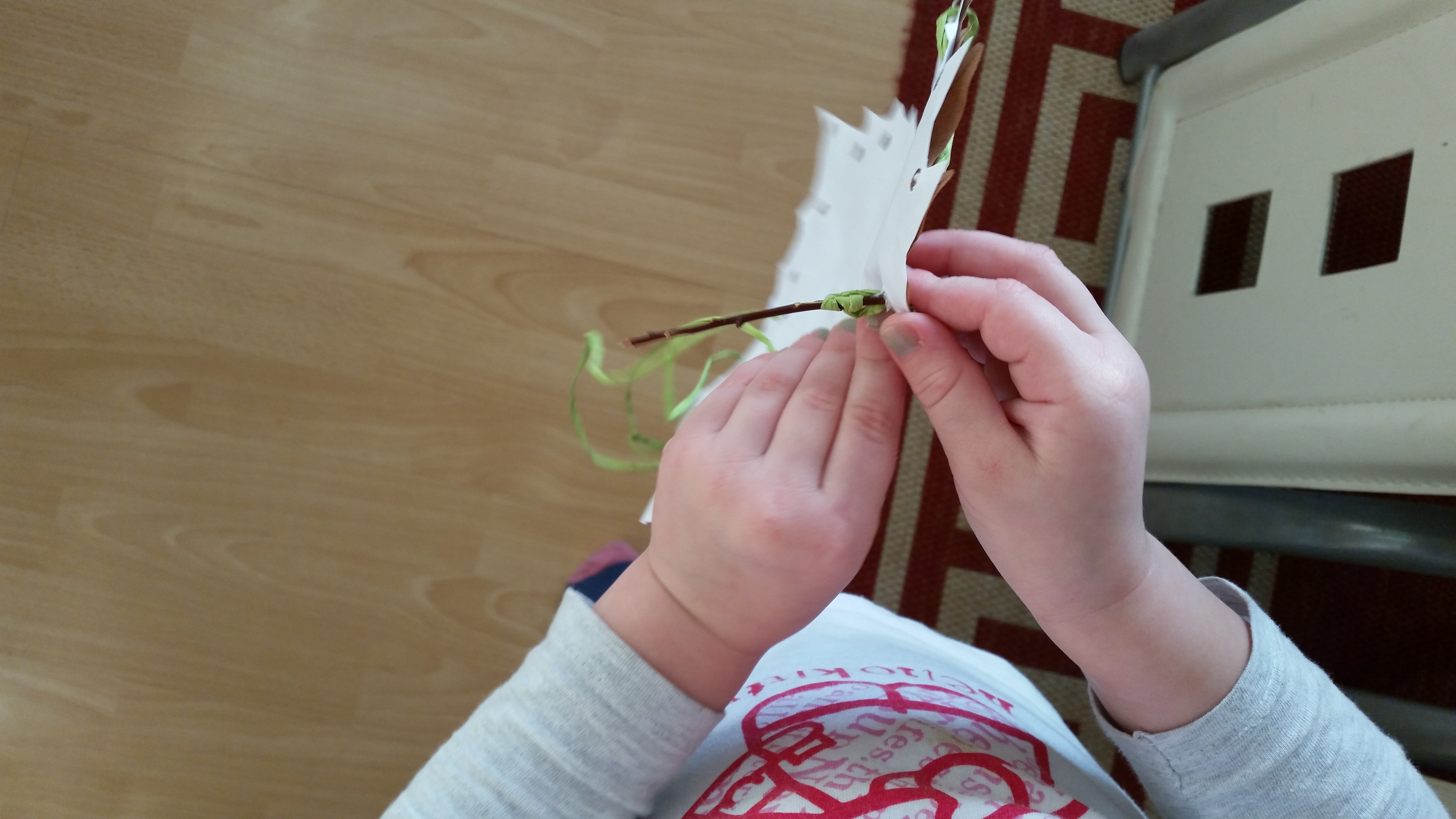 List, ki je otroku najbolj všeč, zalepite na risalni list, obložite z nekaj debelimi knjigami in pustite deset minust stati, da se lista dobro sprimeta. Nato obrežite list po obliki drevesnega lista ter ga na poljubnih koncih naluknjajte z luknjačem. Odlomite vejico, uporabite lahko tudi odlomljeno špilo, zobotrebec, ki ste mu odrezali špice ali kaj podobnega, okrog navežite vrv in pretikanka je narejena. Otrok lahko po mili volji napeljuje vrv skozi luknje, trga ali cufa list, se igra in raziskuje. In še povsem zastonj je. Ko ga bo uničil, mu boste naredii pa novo pretikanko.