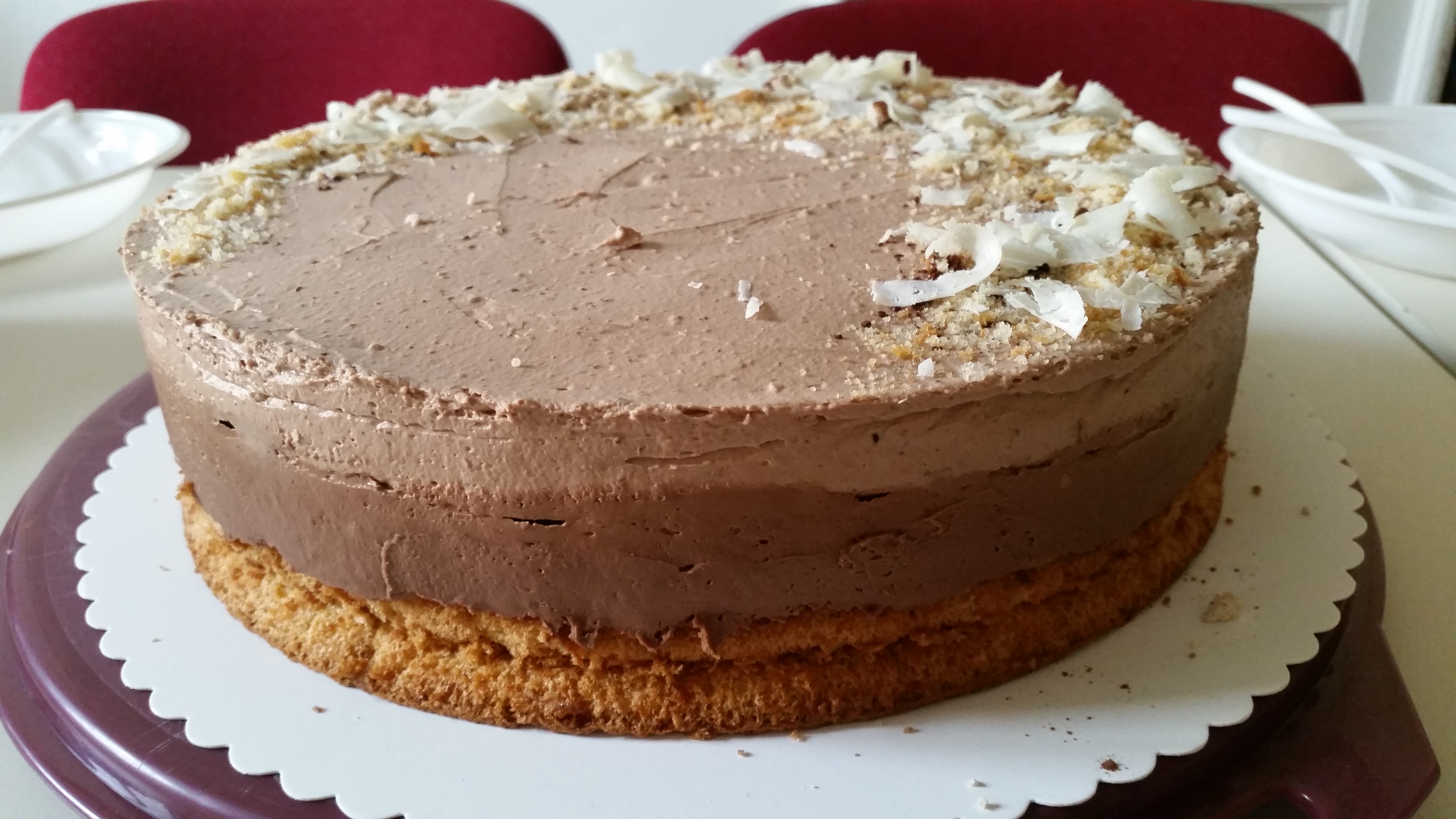Rumenjake in beljake ločimo, iz beljakov stepemo čvrst sneg, k rumenjakom pa dodamo sladkor in stepemo v čvrsto svetlo rumeno jajčno kremo. K rumenjakom dodamo zdrobljene piškote in 3 žlice mleka ter dobro zmešamo. Na koncu rahlo vmešamo sneg. Vlijemo v tortni model obložen s papirjem za peko in pečemo 25 minut na 180 stopinj. Ko je biskvit pečen ga ohladimo.