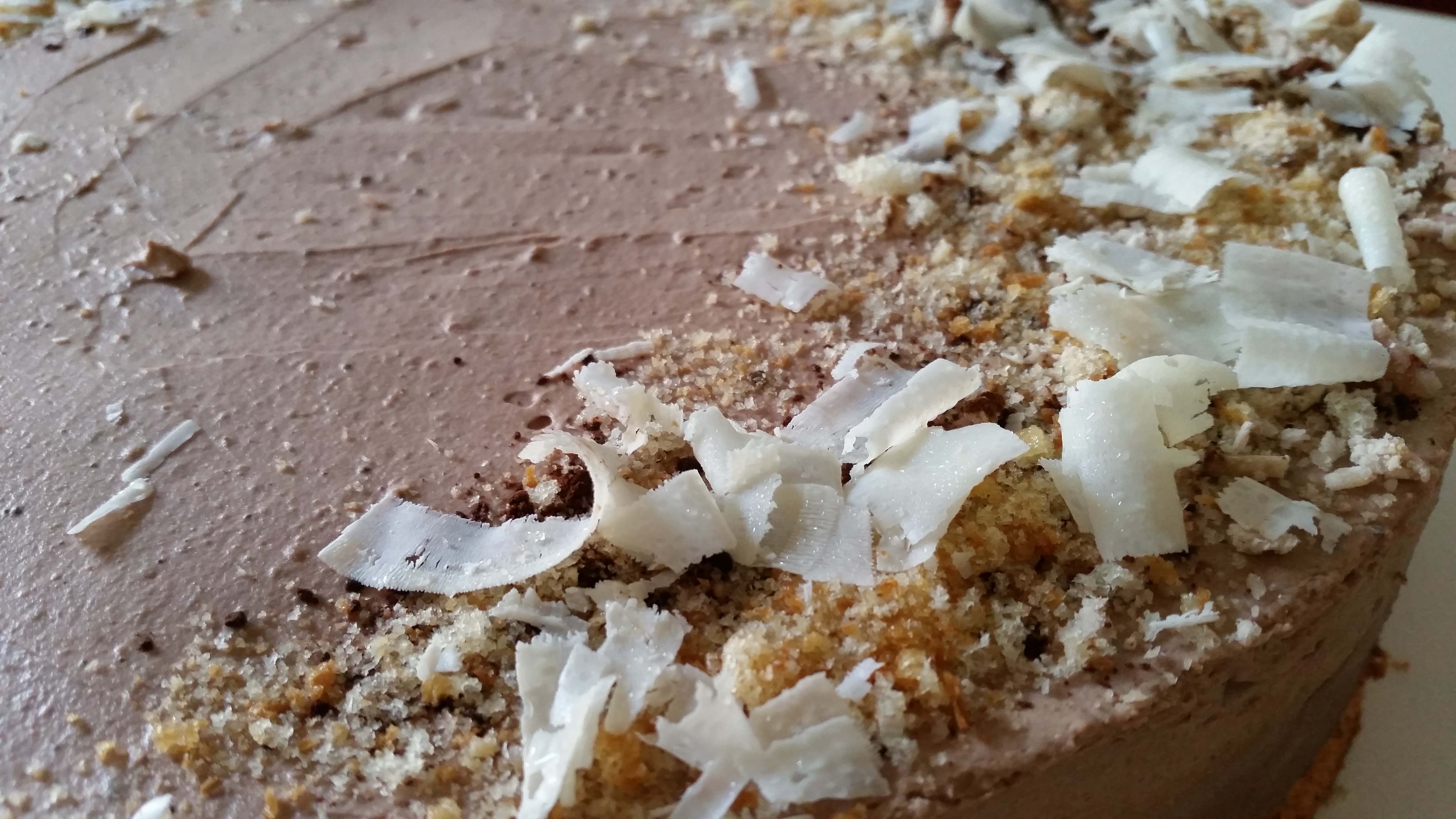 Dekoriramo jo s kostanjevim pirejem, drobtinami piškotov, čokoladnimi ostružki in koščki piškotov.
