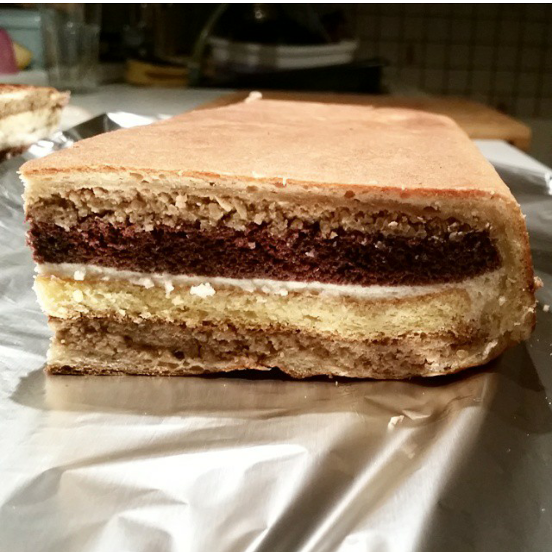 Pečemo jo na 180 stopinj približno 40-45 minut, lahko tudi par minut dlje. Ko je pečena, jo pokrijte s kuhinjsko krpo in brisačo ter pustite, da se počasi ohladi. Ko je popolnoma ohlajena, jo previdno zvrnite iz pekača; jaz nanjo vedno položim veliko leseno kuhinjsko desko prekrito s kuhinjsko krpo in jo nato obrnem. Razrežem jo po dolgem, na tri polja ter vsak kos posebej zavijem v folijo. V hladilniku jo lahko hranite teden ali dva, lahko pa jo tudi zamrznete. A najboljša je vsekakor sveža in mehka.