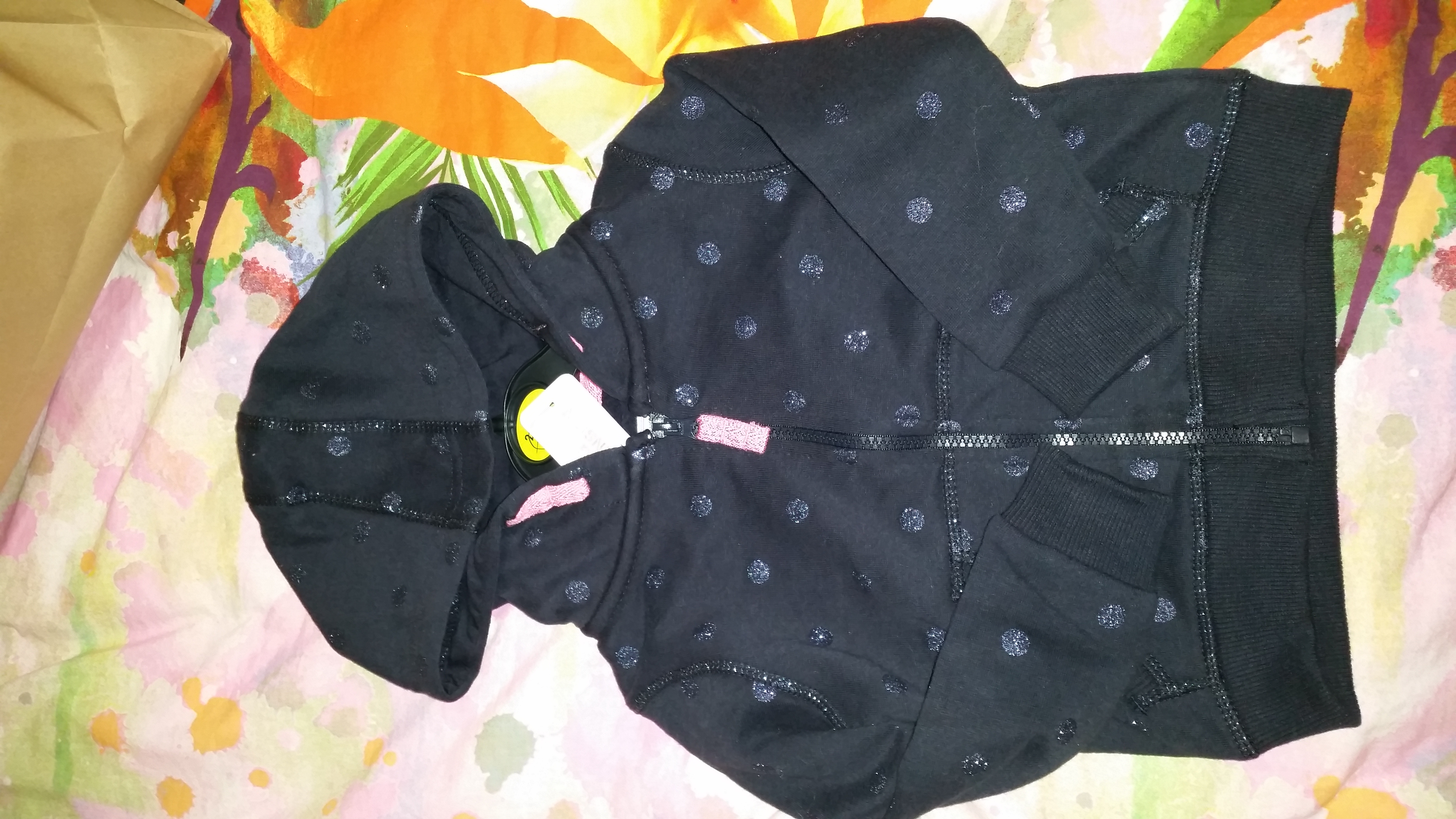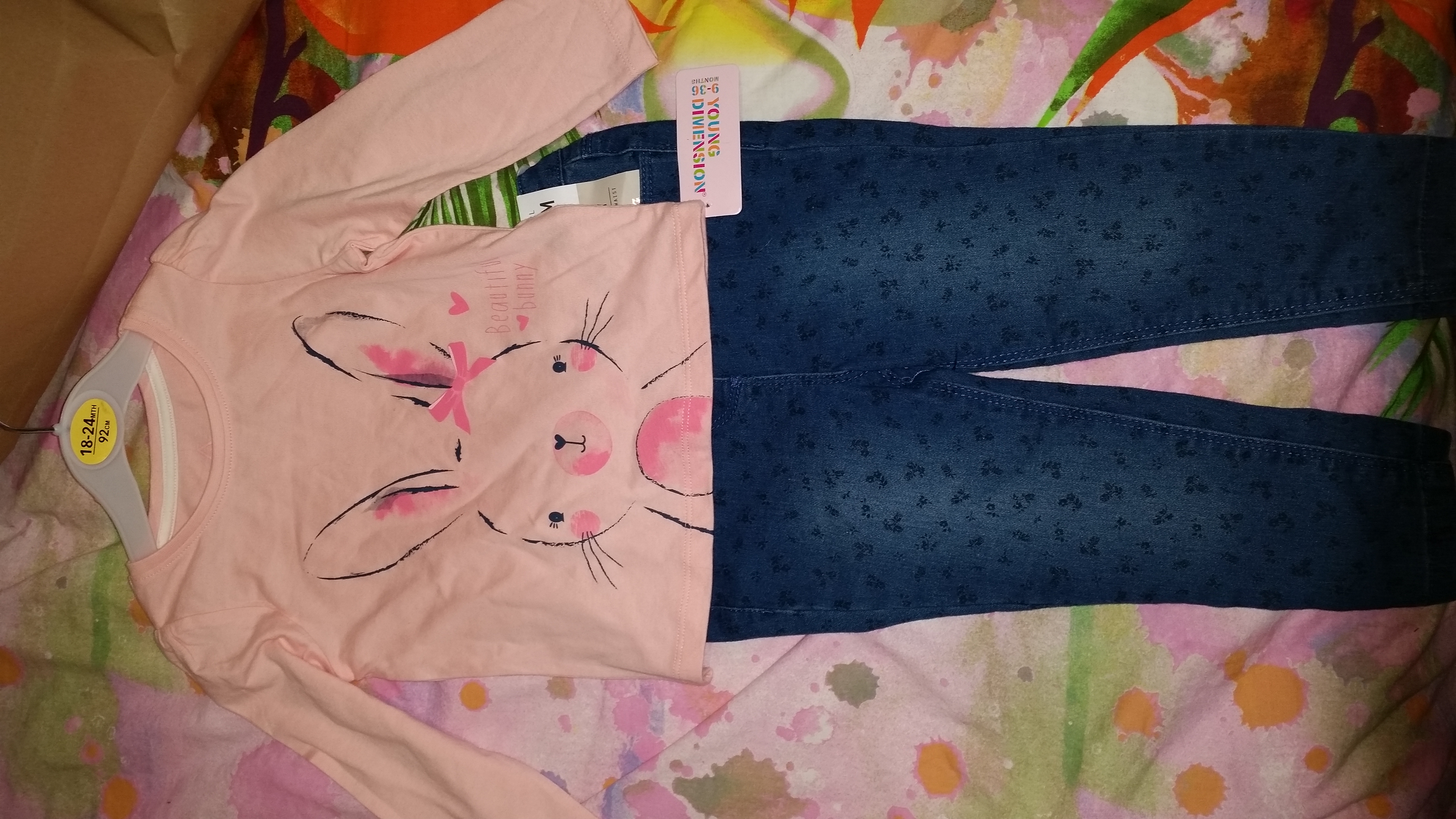 Malemu sem kupila dvojne res frajerske športne hlače, jopico, komplet spalnih pajacov, ki je bil v velikosti 18-24 zadnji, dva kompleta kapice z rokavičkami (enega sem domov prinesla brez ene rokavičke, nimam pojma kako) in hlačne nogavičke. Ria sem kupila tuniko z dolgimi rokavi s cvetličnim vzorcem, majčko s čipkastim vstavkom na hrbtni strani in tričetrt rokavi, dve komplet trenirki zgornji in spodnji del, cel kup špangic, prstanov in gumic, pa šal, rokavičke in naušnike ter nekaj drugih malenkosti. Za moža pa samo dva puloverja. V vrečkah pa se je znašlo tudi nekaj drugih stvari.