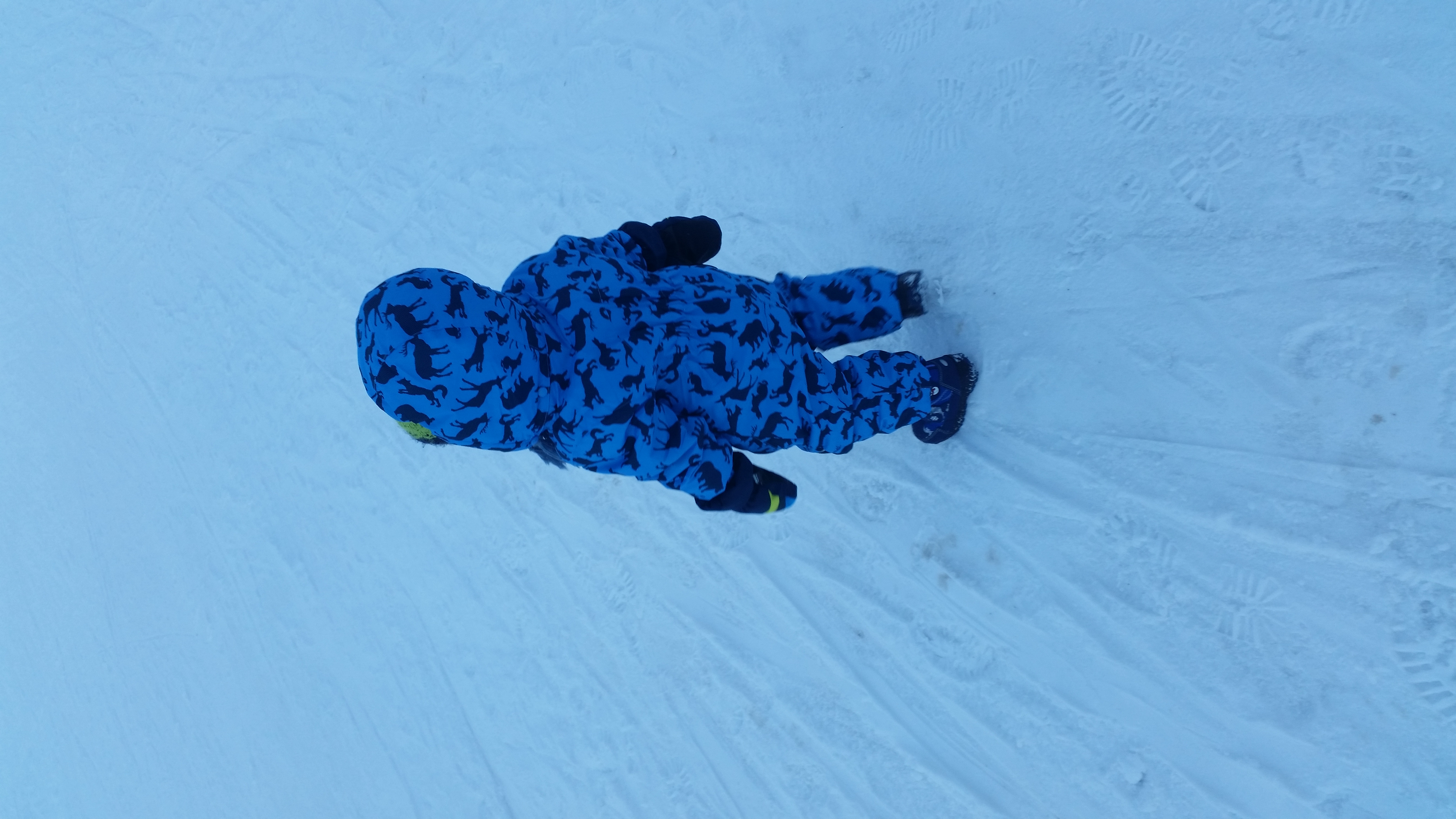 Otroka sta se radostila zabave na snegu, ata pa treninga na prostem. Zakon! Na sankališču pri gondoli so nas pričakali kamni in ogromni kupi peska. Sneg je bil zvožen do osnove, dobesedno do zemlje, grbine so bile ogromne in so kar razmetavale sanke. Pa to Rie sploh ni motilo in sta z atijem uživala kot nora. Noe pa na sanke sploh ni želel. Dokler ju je samo še vlekel po poti do sankališča, je bilo vse vredu, potem pa jok in užaljenost. Ne bo sedel, ne bo se vozil, kakšen stolček in kakšne sani. On bo hodil. On bo tekal po hribu, padal v jarke in se kotalil. To sankališče smo hitro zamenjali s tistim pri Areni. Pot od enega do drugega ni dolga, a za slabo leto in pol starega otroka vendarle naporna, še posebej če mora najprej priti iz zaledenelega hriba, se potem povzpeti na drug hribček in potem še na hrib. Vse brez problema. Z vleiko energije in volje. Z nasmeškom. Prav vsak košček snega je hotel prijeti, vsakemu mimoidočemu je mahal in se nasmihal, zaledenele poti ga sploh niso motile in na koncu ga je namesto sankališča na snežnem stadionu veliko bolj mikala strmina ob hotelu Arena.