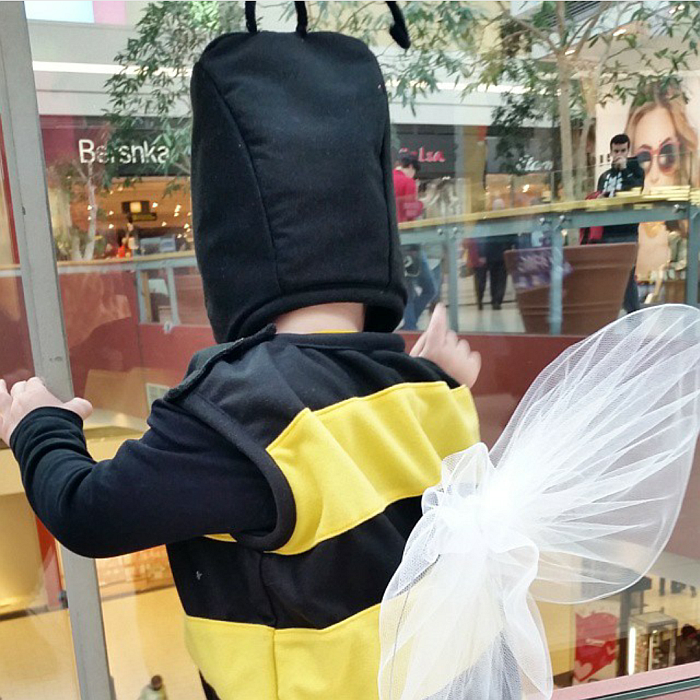 Mi smo bili prvo leto, ko je bila Ria še dojenčica, jagode, takšne res hude. Leto kasneje smo bili čebelica, čebelar in marjetica, lani smo bili gobice. Čisto odkrito; kostume za jagodke nam je zašila tašča, tudi za čebelico in čebelarja, krila in klobuk marjetice pa sme izdelala jaz in če so bila krila preprosta, mi je klobuk vzel ogromno časa in energije; vse te nogavice, pravilne oblike žice, barvanje in sušenje, lepo prelivanje barv in potem še čebelice. Sem se kar potrudila, a sem se morala, če sva bila marjetica v resnici dva, poleg tega pa sme nanj zelo ponosna. 😉 Letos bomo pa… živali. Ria sicer insistira, da bi bili za pusta morska deklica, kralj Triton, rak Sebastijan in ribica Fabij ali morda čarovnica Urška ali pa Elsa, Ana, Krištof, Sven in Olaf ali pa sneguljčica in sedem palčkov. Če bi šlo, bi ona imela šest različnih mask, no, najbrž bi našla še kakšno in bila vsak dan nekaj drugega. Odpade, seveda. Maske bom izdelala sama in glede na letošnjo zamisel, bom imela dela kar precej. Ogromno rezanja, veliko šivanja in malo prepletanja. Upam, da mi uspe, tako kot si želim. Danes sem šla v lov na blago in prišla domov praznih rok. Našli sva top blago za morsko deklico – originalno barvo blaga za rep in nedrček, ampak za naše živalice nič pametnega.