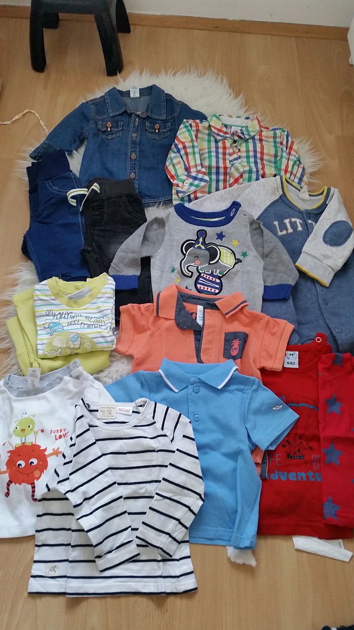 Ker je oblačil res veliko, sem se odločila, da jih ne bom objavljala po skupinah, saj mi to vzame preveč časa – sortiranje po spolu, po velikostih, glede na znamke, pa vsi opisi itd., vse sem zbrala na enem mestu. Gre za fantovska oblačila od velikosti 56 do 86 in dekliška oblačila od velikosti 68 do 104 (manjših je samo nekaj pozabljenih kosov). Pod slikami so velikosti, cene, znamke, opisi kvalitete. Vsa oblačila so brez madežev (se opravičujem, če mi je kje kateri pobegnil), ker umazanih oblačil ne prodajam, četudi bi šli madeži morebiti s pranjem dol, niso strgana in so lepo ohranjena, nekatera so povsem nova, nekatera samo enkrat oblečena, nekatera nošena malce več. Cene so določene glede na ohranjenost in znamko posameznih oblačil oziroma glede na njihovo posebnost. Vse slike so oštevilčene, k znesku kupnine pa se prišteje še ptt. Prosim, da se mi vse, ki bi karkoli želele oglasite na zs Mamin Twist ali moj osebni ter pripišete številke oblačil, ki bi jih želele. Prosim brez želja po dodatnih fotografijah, merjenjih in podobnem, ker tega ne bom počela; že fotografiranje in sortiranje vseh teh oblačil mi je poleg obeh otrok vzelo ves dopoldan. Lahko pa zagotovim, da nikoli še nobena ni bila razočarana, saj oblačila vedno prispejo v takšnem stanju kot obljubim.