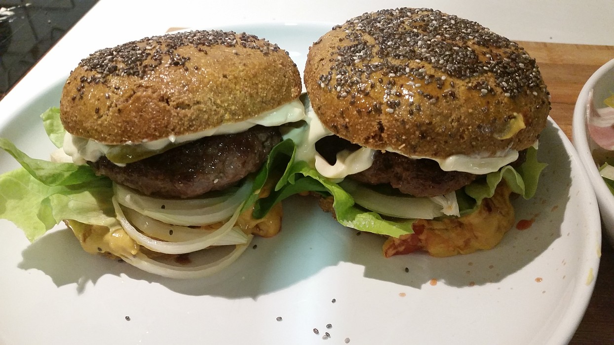 Včeraj sem obljubila recept za keto buns – burger štručke brez moke, sladkorja, kvasa. Sem mislila, da bom objavila še svežega, pa mi žal ni uspelo. S polnim želodcem sva raje čepela na kavču, kot počela še kaj koristnega. Zato pa recept objavljam danes. Ne maram zelenjavnih nadomestkov kruha in drugih testenih izdelkov, ne maram preveč močnatih, vlažnih zadev, poleg tega pa sem želela, da so res dober približek klasičnih polnozrnatih ali temnih štručk, ki sva jih jedla sicer. Na spletu je na kupe receptov (v angleščini), a me prav noben ni prepričal; nekatere imajo ogromno količino maščobe, druge so zgolj iz kokosove ali mandljeve moke, nekatere so samo iz treh sestavin. Tako sem naredila svoje. Čisto po najinih željah in bile so odlične. Resnično.
