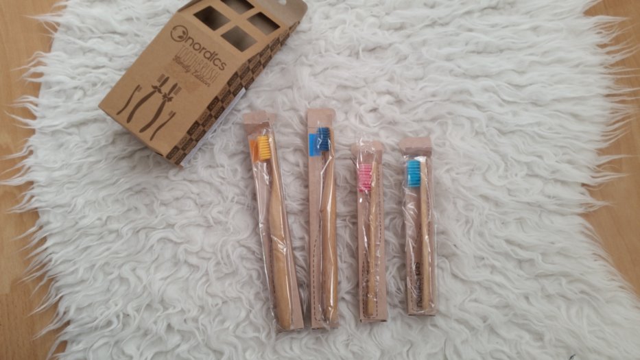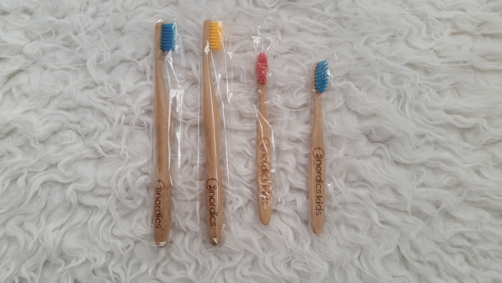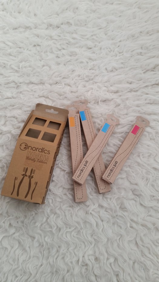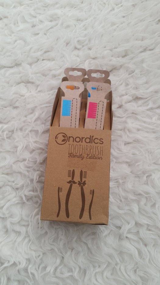 Kozmetix nam je poslal družinski komplet eko zobnih ščetk iz bambusa podjetja Nordics, v katerem sta dve veliki in dve majhni zobni ščetki; veliki imata ščetine modre in rumene barve, majhni pa roza in modre barve, tako smo dobili vsak svojo ščetko in ni bilo nobenih težav z ločevanjem. Ria jo je želela preizkusiti že prvi večer, jaz pa z radovednostjo nisem zaostajala, a ko sva začeli z umivanjem zob, sva doživeli manjši šok. Zobne ščetke ne drsijo v rokah in so na otip bolj robustne od plastičnih, kar je v prvem trenutku malce moteče, a se na to navadiš. Še bolj poseben je namreč občutek v ustih; glava zobne ščetke se mi je, čeprav v resnici ni, zdela nekoliko večja in predvsem bolj okorna, ščetine pa so bile na začetku precej ostre, a je tudi ta občutek po dveh ali treh umivanjih izginil. Čeprav se ščetke po obliki in velikosti ne razlikujejo bistveno od vseh ostalih ščetk, so zaradi razlike v materialu na začetku precej drugačne, a se jih hitro navadiš. Ščetine so različnih dolžin, kot bi bile oblikovane v čopke in zato veliko lepše objamejo zobovje; čeprav so se mi sprva zdele ostre in so mi malce ranile dlesni – ne vem, morda sem se morala jaz navaditi ščetke ali pa sem bila še od prejšnje navajena, da sem premočno ščetkala, kar pri tej ščetki ni potrebno, so se po nekaj umivanjih izkazale za veliko bolj učinkovite in natančne. Zobje so bili veliko bolj čisti, obloge so se nalagale počasneje in v manjših količinah, čutila sem, da imam čisto prav vsako špranjico med zobmi, za kar sem poprej potrebovala zobno nitko. Po nekaj dneh sem bila nad ščetko navdušena in zdi se mi, da so moje dlesni odslej bolje prekrvavljene, zobje pa veliko bolj čisti.