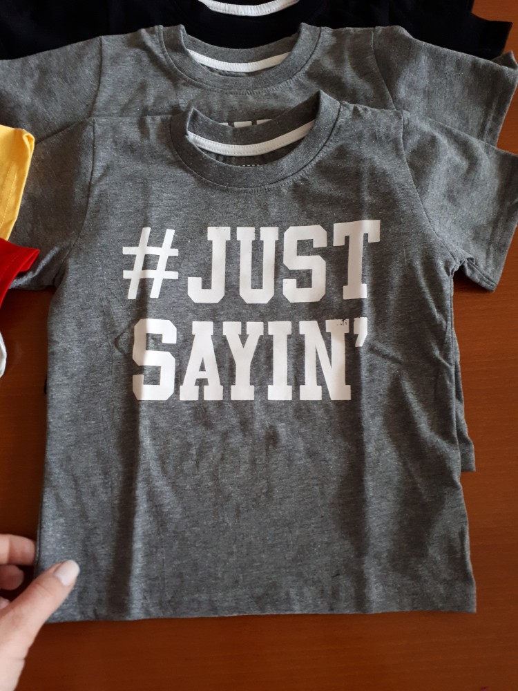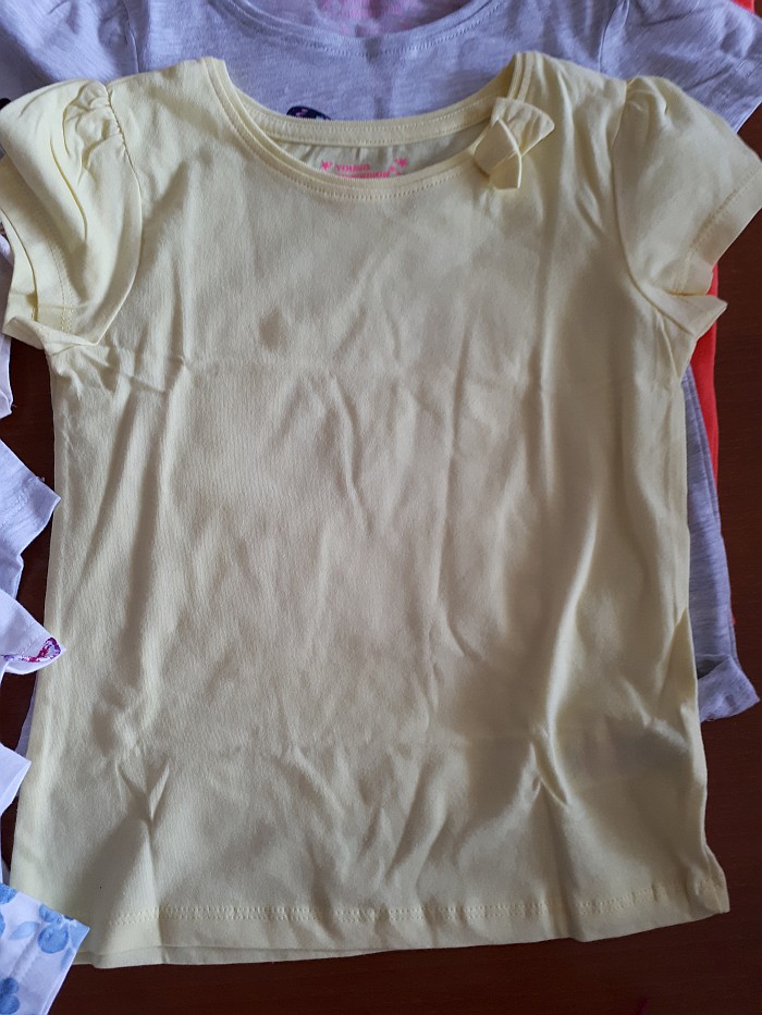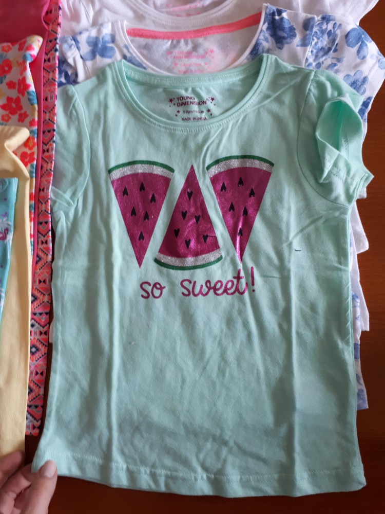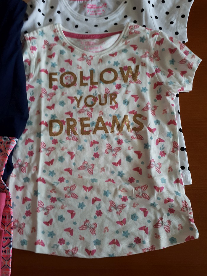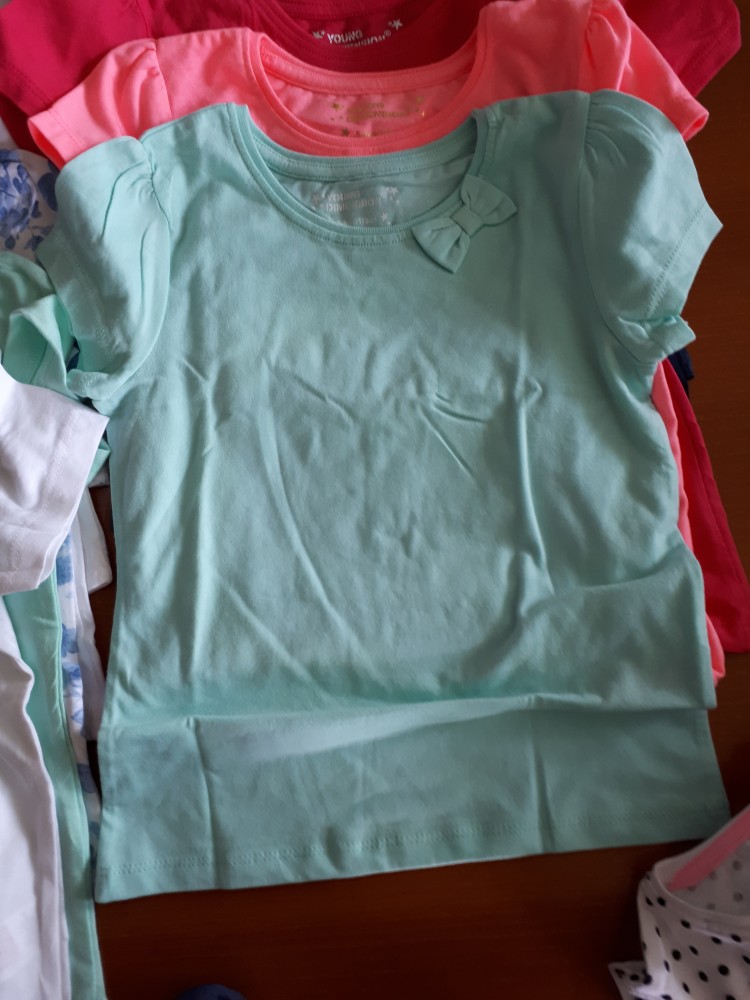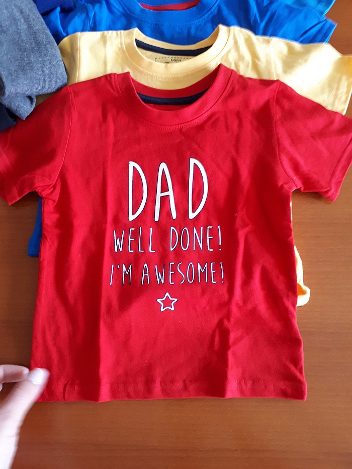 Domov sem prinesla pet vreč oblačil; trenirke, kratke hlače in majice za moža, majice, pulovrčke, sandale, nahrbtnike in perilo zase, majice in kratke hlače ter spodnje dele – trenirke in legice za otroka. Da me ne boste spraševale, ali že imajo kaj poletne kolekcije – ja, vse je že poletno, tudi kopalke, obutev, pokrivala in ostali dodatki, ali imajo kaj znižanj – ja, znižan je kar lep del ženske kolekcije kot so tanki pleteni pulovrčki, jopice, bluze, športna oblačila, majice, tunike, srajce, hlače, tudi pižame, perilo, torbice, nekaj obutve. Na otroškem oddelku ni znižano praktično nič oziroma zgolj par kosov, so pa zato cene res ugodne. Fantovke in dekliške majčke s kratkimi rokavi do velikosti 3 let stanejo 1,70 eur in do velikosti 8 let stanejo 2,00 eur; vsak je dobil 15-20 kosov. To so res lepe in hvaležne majčke; lahko jih perem na 60 stopinj, niso občutljive, lepo se nosijo, imajo lepe potiske in so smešno poceni, tako mi nikoli nobene ni škoda, ko jo zavržem. Poleti ponavadi preoblečemo dve ali tri na dan in zato jih vedno kupim na zalogo, preden bomo šli junija na morje, pa jih bom zagotovo kupila še eno takšno rundo.