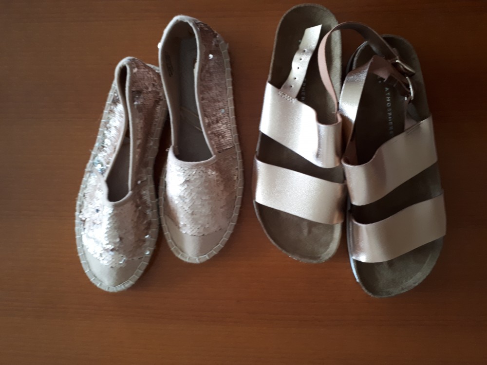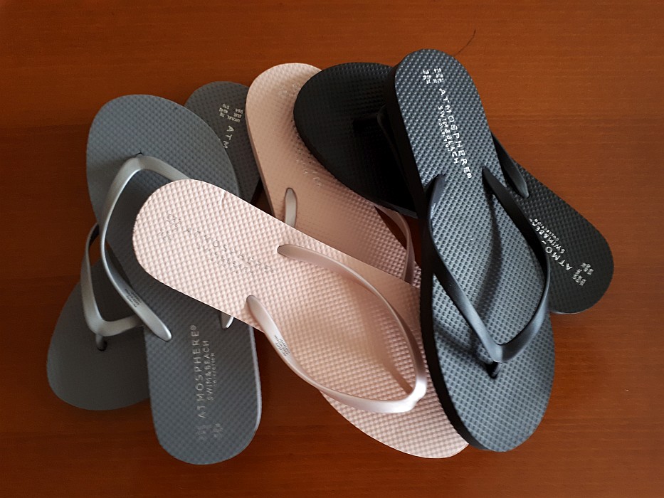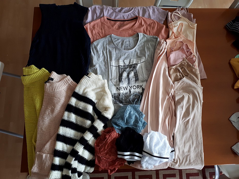 Tokrat sem tudi zase našla kar nekaj kosov; vedno si nabavim nekaj parov japonk za plažo, saj so lepe, trpežne in ugodne, tokrat sem izbrala tudi nekaj lahkotnih pulovrčkov, bazičnih majic z motivom in barvnih majic na naramnice, ki jih nosim kot spodnje majice. Čisto presrečna sem, ker sem dobila tudi `rose gold` espadrille in sandale, pa tudi dva čudovita nahrbtnika – ja, nahrbtnik je zadnje čase nepogrešljiv, saj potrebujem obe roki prosti, ramena pa teže moje torbice ne prenašajo več dobro, z nahrbtnikom na ramenih pa sem veliko bolj svobodna, okretna in sproščena. Moja zadnja obsesija, poleg rose gold barve, so tudi `brallette nedrci`, ker so lepi, seksi in super udobni; nobenih kosti, nobenih podloženih košaric in nadležnega zapenjanja na hrbtu, itak imam raje naravno velikost prsi, kot varljivo privzdignjene.