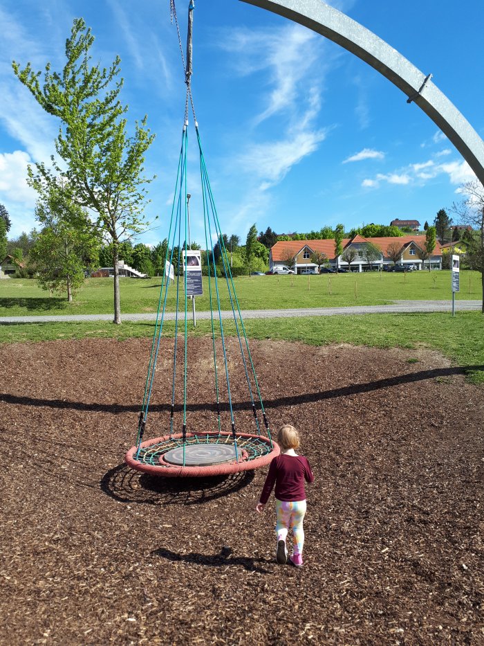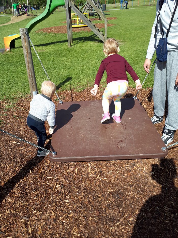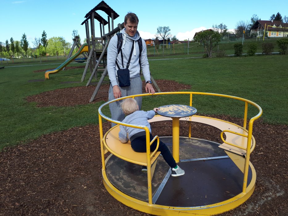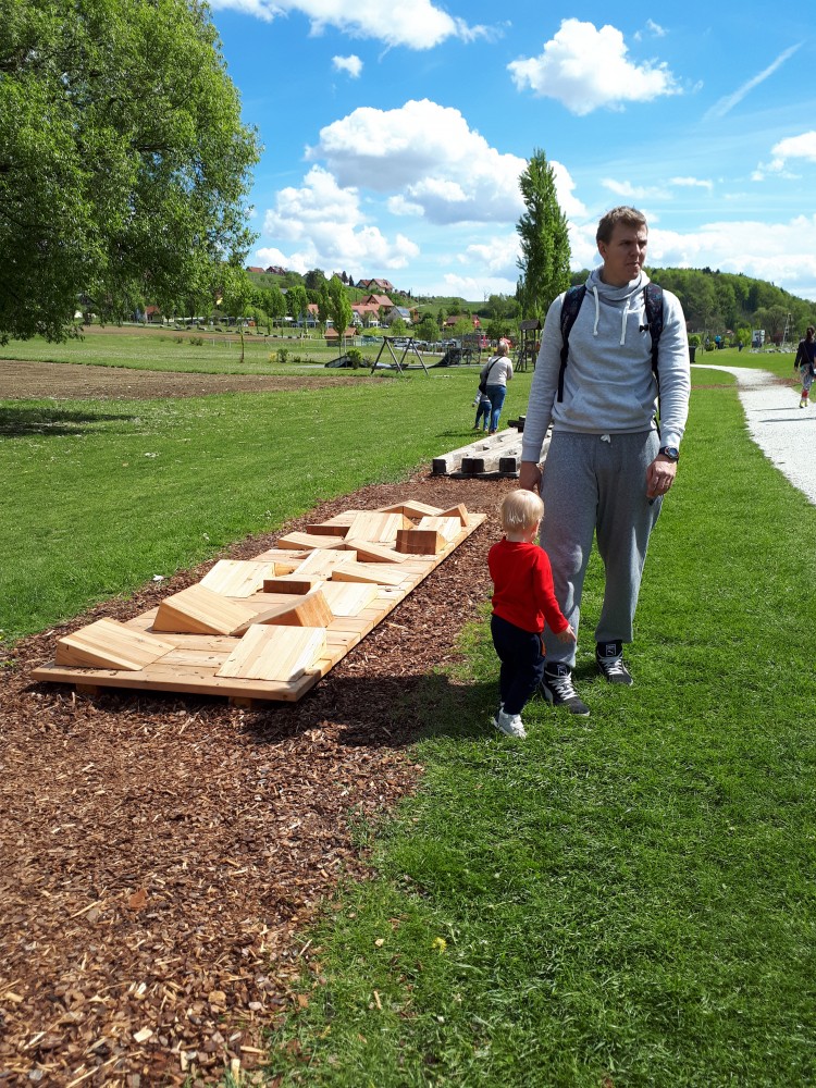 Ob pol desetih je bilo v parku še vse mirno, poleg nas je bila tam samo še ena družinica, ki je prispela minuto pred nami, a uro kasneje je bila slika povsem drugačna; vriskajoči otroci, vesel živ žav, gneča na igralih in vrste pri poligonih. Vedno znova se sprašujem, zakaj si kaj takega nihče ne omisli pri nas; zakaj ne moremo imeti v Mariboru enega takšnega luštnega parka, ki bi bil v veselje otrok in odraslih.