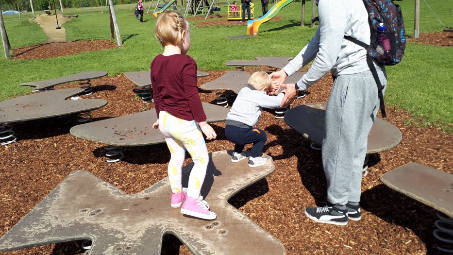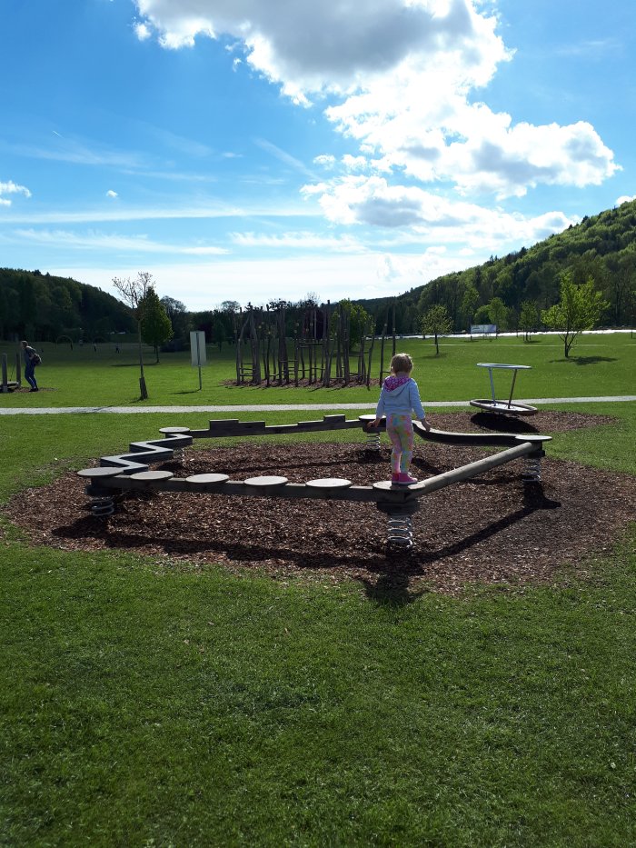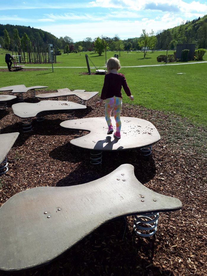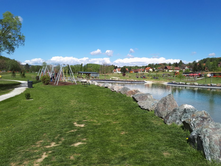 Pozibavanje na nihalu, plezanje po drevesu, spust z krožno nihalko, vrtljiva miza, simulator vetra, zibajoče ploščadi, viseče mreže, gugajoči labirint, orientacijski plezalni gozd, plezala, lesene fitnes naprave, domišljijska vrata, skakanje po kamnih čez potok, tobogani, rampa za rolkanje in nihajoča vrv so nas prepričali in odslej bomo park zagotovo večkrat obiskali (odličen je za utruditi otroke, ki potem v avtu ljubko zaspijo že pred mejo). Vsekakor se bomo tja odpravili tudi v poletnih mesecih, ko se lahko osvežite v katerem od jezerc in poležavate na zelenici.