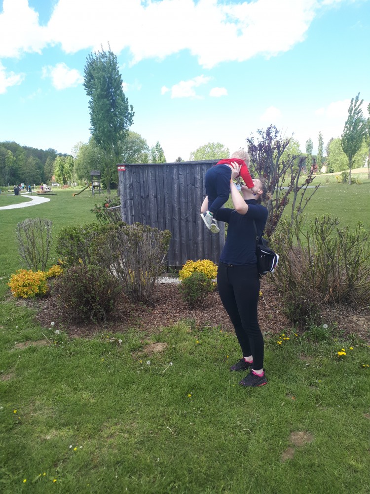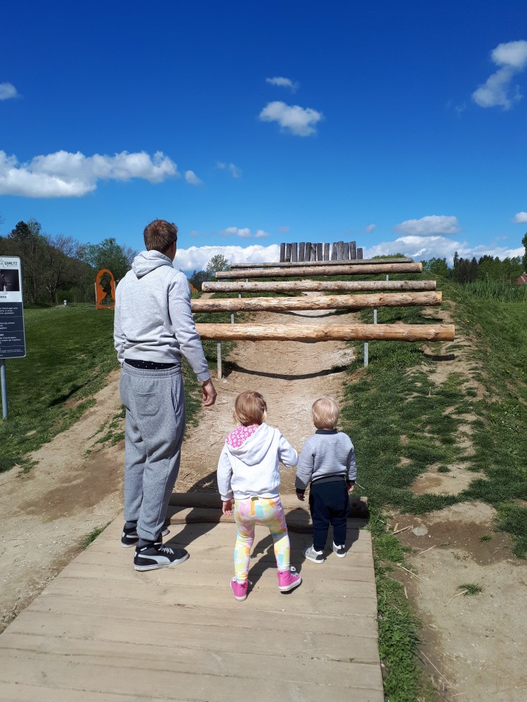 Da smo prehodili cel park in preizkusili (skoraj ) vse postaje, smo potrebovali dve uri. Sonce je pred poldnevom že pošteno pripekalo, gneča je bila vse večja, naš najmlajši pa je na eni izmed ovir na poligonu skoraj zadremal. Ria je rekla, da je bilo naravnost fantastično in tudi nama je bilo zelo všeč. Toliko različnih aktivnosti je, ki so zabavne ne samo otrokom, ampak tudi odraslim, ki nas postavljajo pred izziv in preizkušnjo, ki nam pokažejo, kako spretni in močni smo. Malemu je bilo najbolj všeč metanje 5kg kamnite krogle; ni hotel stran in trmasto je jokal, dokler mu ni mož pomagal dvignit krogle in jo spustiti na tla.