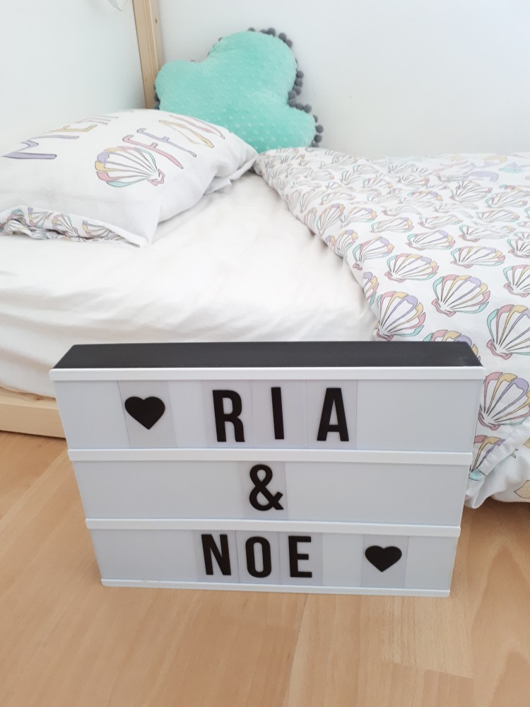 Ria je dolgo spala v najini spalnici, še takrat, ko je bila že v večji posteljici; tako smo se navadili in nam je ustrezalo, vendar pa sva jo nekaj mesecev pred Noetovim rojstvom prestavila v njeno sobo, saj sva vedela, da bo zdaj mesto v spalnici pripadlo Noetu. Sem ena tistih mamic, ki ima novorojenčka in kasneje dojenčka raje ob sebi, ker se tako počutim bolj pomirjeno in ga imam vedno na dosegu roke, vse slišim in vidim in je otrok posledično bolj varen, pa še nočnemu tekanju iz sobe v sobo se izogneš. Ko sva opremljala otroško sobo, sva imela v mislih dejstvo, da bosta v njej kmalu bivala dva, deček in deklica in mora biti prilagojena obema in barvno primerna za oba spola. Želela sva preprosto, minimalistično, nevtralno otroško sobo, ker jo bodo itak igrače, dodatki, ki si jih bosta zaželela, knjige in cel kup drugih reči popestrile in naredile pisano in živahno.
