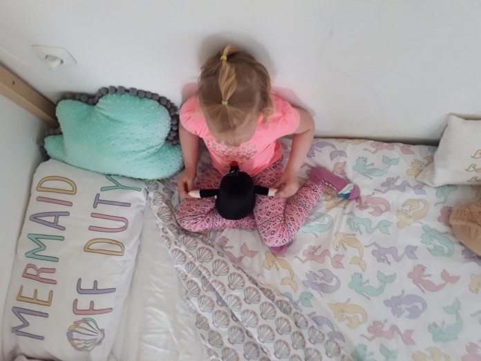 Ker nimamo možnosti, da bi imela otroka vsak svojo sobo, si jo pač delita, kar se mi sploh ne zdi slabo ali sporno, tudi midve s sestro sva si jo dolgo delili, vse tja do srednje šole, pa nama zato nič ni manjkalo, nisva bili nikoli prikrajšani za zasebnost ali mir, ko sva se učili; navadili sva se prilagajanja, usklajevanja, navadili sva se hrupa in za učenje nobena nikoli ni potrebovala tišine. Po mili volji sva prestavljali pohištvo, včasih trikrat na mesec, samo da sva se počutili udobno.
