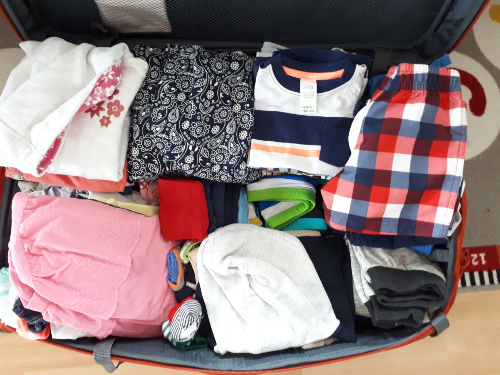 Najprej zavijem v otroško sobo, odprem omare in začnem s pakiranjem. Enostavno pogledam, kaj vse bosta potrebovala, kaj vse bi jima lahko prišlo prav, kaj vse bomo vzeli za rezervo in kaj bomo vzeli za primer slabega vremena in zložim v kovček. Medtem seveda naredim še manjšo selekcijo omare, izločim vse, kar sta prerastla in lepo zložim vse kar je v omari ostalo. Tako preživim pol dneva in ko se mi zdi, da sem končno opravila, kovčka ne gre zapreti. Vedno ista zgodba. Ker čeprav vsakič rečem, da bom tokrat vzela manj, na koncu vzamem še več – za vsak slučaj.