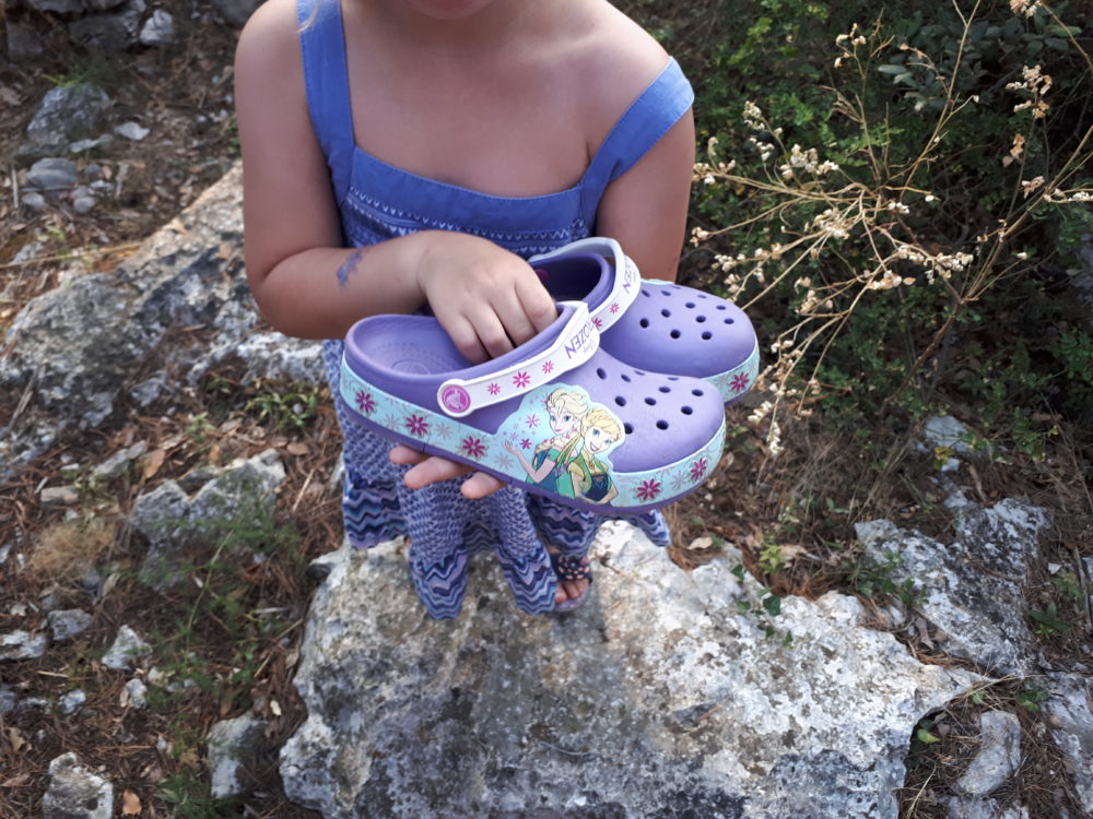 Vse dokler jih nista moja starša kupila Rii na prvem skupnem dopustu v Biogradu. Domov sta prinesla živo rumene natikače in jaz sem bila strogo proti, medtem, ko se je mala, še ne eno leto stara gospodična, zaljubila v njih. Nikoli ne bom pozabila, kako prikupno je `racala ` v njih; zaradi velikosti podplata je imela dovolj opore, kar ji je omogočalo zanesljiv in varen korak, še posebej zato, ker je komaj prav shodila, poleg tega je lahko z njimi hodila po kamenju, asfaltu, zemlji in tudi vodi, bili so enostavni za čiščenje, hitro so se posušili in ni imela težav s kamenčki, ki so jo sicer nenehno mučili pri klasičnih sandalih za v vodo. Po desetih dneh na morju, je Crocse nosila tudi doma, pa ne samo na vrtu in dvorišču, ampak tudi na sprehod in v bližnjo trgovino. Prekršila sem vse, kar sem do tedaj govorila, a le zato, ker sem videla, da je moj otrok zadovoljen in da se v njih udobno počuti. Kaj vse naredimo za svoje otroke, kajne?