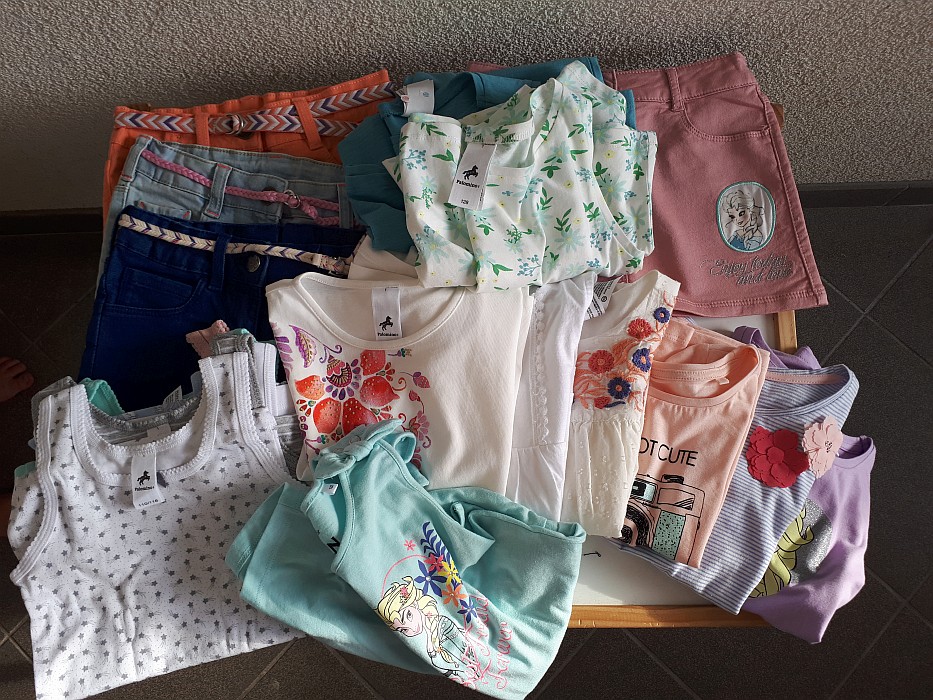 Kot večina že verjetno ve, obožujem Zaro, oblačila so noro lepa, a povečini tudi zelo občutljiva in naporna za vzdrževanje, zato se tam poslužujemo le finih kosov, ki jih imata za posebne priložnosti. Vsekakor pa mi je top H&M, ker so njihova oblačila udobna, lepa, neobčutljiva, ker lahko vse perem na 60 stopinj (til krilc in oblekic pri nas nimamo), ker se ne uničijo s pranjem in so zelo hvaležna. Če izpustimo Primark, ki ga moram nujno obiskati v prihodnjih tednih, občasno nakupujem tudi v trgovinah Okaidi, Bambini, Tom Taylor, veliko pa tudi v C&A in seveda sem včeraj nujno morala skočiti tja in dobili sva kar nekaj lepih stvari, od tega nekaj za prihodnje poletje in nekaj za jesen. Noe je seveda spet ostal prikrajšan, a sem zanj dobila vsaj prehodno jakno (softshell), kavbojke, ogromno zalogo nogavičk, pa tudi pulover, jopico, pižamo in dve majčki s kratkimi rokavi za prihodnje poletje. Nekaj pa je, čeprav še zdaleč ne vse, kar potrebuje. Še dobro, da ne potrebuje tako zelo nujno, ker je v omari za sproti vedno dovolj stvari in tudi če nas jutri preseneti jesen, ne bo noben bos ali nag.