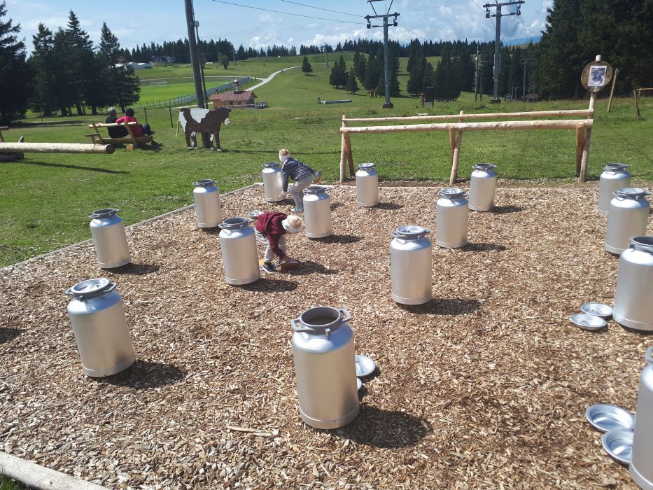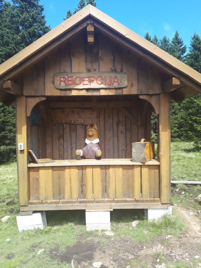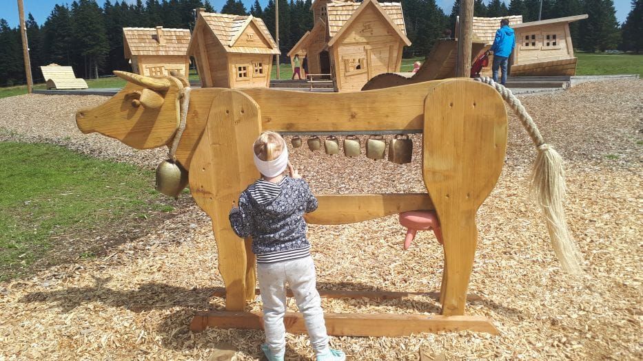 Ker je bilo za nedeljo dopoldne napovedano slabo vreme in na Rogli mrzlih deset stopinj, smo dopoldne izkoristili za zadnje kopanje. Ria je rekla, da bi ostala kar tri tedne; ves čas sta se kopala, zvečer sta gledala risanke in jedla sta lahko kar jima je pasalo, sem moram prišteti tudi sladoled in bonbone, s katerimi sta nadomestila izgubljeno energijo in tudi jaz bi se strinjala z njo. Po kosilu smo se vendarle odpravili še na Roglo, glede na to, da smo bili že tako blizu in da nas je opoldne prijetno grelo sonce, se nam je zdelo škoda, da ne bi šli pogledati vseh novih aktivnosti, ki jih imajo za otroke, še posebej, ker sta se jih otroka cel vikend zelo veselila. Lesena krava z zvonci, ogromen spomin iz kanglic za mleko, velik lesen Človek ne jezi se in Pohorska vas s tematskimi lesenimi hišicami so ju čisto navdušili, še posebej pa jima je bila všeč Mini Rogla – vasica lesenih hišic, ki predstavljajo recepcijo, hotelsko sobo, kuhinjo, servis za smuči in Apres ski, v njih pa so lesene živali in različni pripomočki za igro. Res domiseln način za predstavitev turizma in življenja na Rogli; Noe je poplesaval na spremljajočo glasbo, Ria pa se je v vsaki hišici vživela v drugo vlogo in nas doživeto popeljala skozi vasico. Meni je bil najbolj všeč spomin; pod pokrovom vsake lesene kanglice se skriva lesena rezbarija ene izmed pohorskih živali, kanglica pa je napolnjena z lubjem. Preprosta, a zelo domiselna igra, ki je za nekaj časa zamotila otroka, saj sta si dala z odpiranjem kanglic in iskanjem parov precej dela. Želeli smo si ogledati še Zlodejevo hišico, pa je bila žal zaprta, zaradi hladnega in vetrovnega vremena pa smo tudi vožnjo s sedežnico prestavili na prihodnjič. Verjetno ne rabim omenjati, da sta otroka na poti domov v avtu zaspala še preden smo zapustili Roglo.