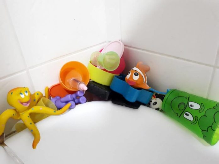 Ko sva prvič postala starša igračam nisva posvečala prevelike pozornosti. Čisto iskreno – vsega je bilo preveč in niti pomislila nisva na to, da bi vsako igračo, ki smo jo dobili posebej pregledala in preverila vse njene funkcionalnosti, zato sva se veliko o igračah učila sproti. Vedno smo igrače v glavnem dobivali in res redko kupovali, zgolj izjemoma, ker jih je itak preveč in tako se nam je nabrala tudi res lepa zbirka igrač za v vodo. Od račk v treh velikostih do domačih živali, špricajočih igračk, tistih, ki se napijejo vode in zrastejo in še veliko drugih. Noro prikupne igračke, še posebej ker špricajo, ker piskajo, ker so mehke in jih lahko otrok vlači po ustih, grize, stiska, poleg tega pa še plavajo na vodi, celo krava, pes in pujs. Nekaj mesecev smo jih veselo uporabljali, potem pa sem kar naenkrat opazila, da je krava potemnela in ni več nežno roza barve, ampak že skoraj vijolične in da iz rumenega prašička izteka neka čudna sivo črna voda. Alarm! Šele takrat mi je na misel padlo, da se je v igračah očitno naredila plesen. Kako tudi ne, ko pa so bile vsak večer v vodi in smo jih potem polne vode (četudi vodo iztisneš še vedno ostane v njih) pospravili v škatlo, kjer so preležale do drugega večera. Teh vodnih igračk, ki imajo spodaj luknjice ne moreš nikakor resnično sčistiti; ne pomagajo alkoholni kis in topla voda, soda bikarbona, alkohol, limonin sok in nobena druga raztopina, ker umazanije preprosto ne moreš dobiti iz njih.