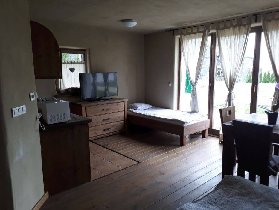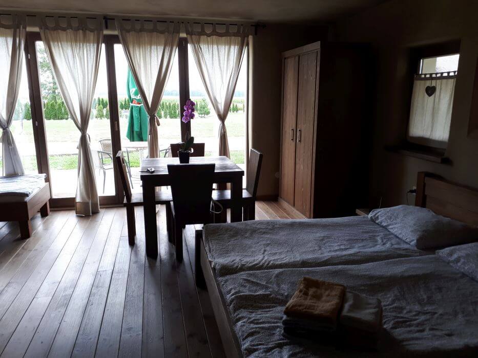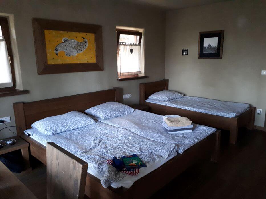 Ob povratku v Panonsko vas smo bili vsi prijetno utrujeni in večerji je sledilo spanje. Bivali smo v apartmaju za 4 osebe, kjer sta bili poleg ene zakonske postelje še dve enojni, a ker smo želeli spati vsi skupaj, smo eno posteljo preprosto primaknili k zakonski in tako smo dobili kraljevo posteljo, na kateri smo imeli vsi dovolj prostora. V apartmaju smo imeli tudi kuhinjsko nišo; zajtrkovali smo v njihovi restavraciji, kosila smo jedli zunaj, večerje pa smo si pripravljali sami. Celoten koncept in izgled Panonske vasi nam je bil zelo všeč; pristno prekmurska, tipične panonske hiše, slamnate strehe, masivno leseno pohištvo rustikalnega videza, velike postelje, starinski ključi in čudovita zelenica z jezercem na sredini. Še posebej všeč mi je bila ideja o adaptaciji starega kozolca, ki so ga z minimalnimi posegi predelali v čudovito stekleno dvorano, v kateri smo mi zjutraj zajtrkovali, sicer pa v njej potekajo različne slovesnosti, praznovanja, pogostitve in sprejemi.