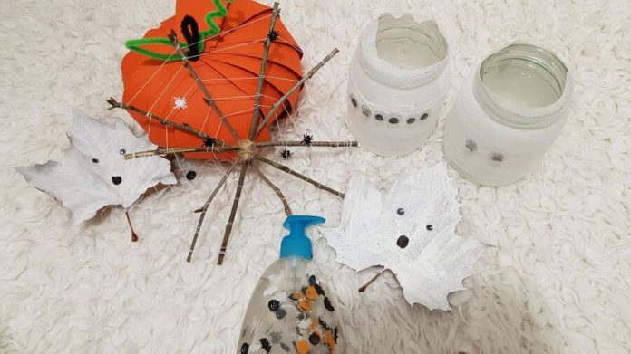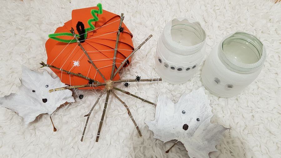 Prihodnji teden je noč čarovnic in pri nas smo letos z izdelavo dekoracije pričeli nekoliko prej kot ponavadi. Do sedaj smo vsako leto ustvarjali tik pred zdajci, ker pa se prihodnji vikend potepamo v Termah Zreče, smo morali letos z izdelavo pohiteti; tako bomo v ponedeljek okraske samo izobesili in postavili na svoja mesta ter prižgali svečke.