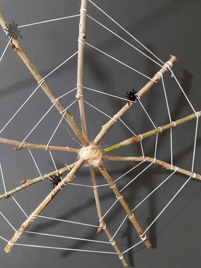 Približno enako dolge vejice z vrvjo zvežemo v zvezdo. Najprej dve vejici povežemo v plus, nato postopoma dodajamo po eno vejico ter jo dobro zvežemo. Ko je zvezda izdelana, jo prepletemo z belim sukancem, belo volno ali kakšno drugo vrvico, ki je lahko tudi druge barve. Če boste vejice enostavno prepletali, torej z vrvjo potovali izmenično zgoraj in spodaj, se ne bo zadržala na vejicah in bo zdrsnila proti sredini. Vrv je potrebno okrog vsake vejice zaviti, da nastane zanka in tako vrv ostane na svojem mestu. Plesti začnete pri sredini in se pomikate po krogu navzven. Ko je pajkova mreža končana, lahko nanjo namestite takšne in drugačne pajke.