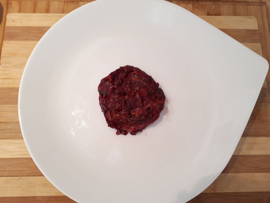 Največjo packarijo v kuhinji je povzročila rdeča pesa. Vse je bilo rdeče – noži, deske, posoda, korito, delovna površina, česarkoli sem se dotaknila, povsod je ostala sled. Celo moji prsti so ostali roza. A je bilo vsaj vredno, ker je burger res top! Mi smo sicer veliki ljubitelji mesa, a vse bolj ugotavljam, da so lahko z malo domišljije tudi vegetarijanske jedi zelo okusne. Če ne jih pa ´začiniš´ s kakšno rezino salame ali koščkom mesa. 😉