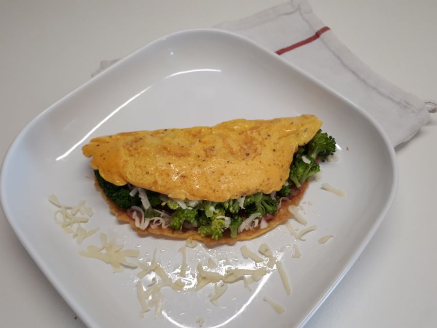 Calzone omleta z brokolijem je klasična jajčna omleta polnjena z Argeta zelenjavnim namazom iz rdeče pese in hrena, brokolijem in sirom. Umešaš jajca (jaz dam dve), dodaš sol, poper in malo česna ter premešaš. V kozici zavreš rahlo slano vodo in v njej blanširaš dve pesti brokolijevih cvetov. Vmes v ponvi spečeš omleto – jajca vliješ v ponev, pokriješ in počakaš, da se na spodnji strani zapeče in po potrebi obrneš in odstaviš. Omleto daš na krožnik in jo po eni polovici namažeš z zelenjavnim namazom Argeta rdeča pesa in hren, dodaš brokoli in posuješ z naribanim sirom ter pokriješ.