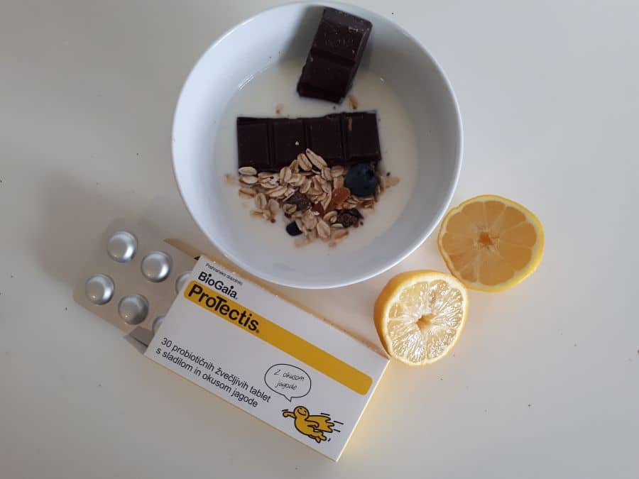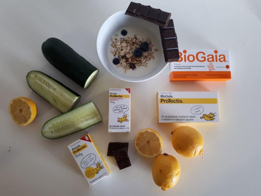 Vsekakor pa ne smete pozabiti na probiotike, ki so ključni pri ohranjanju zdrave črevesne flore in preprečevanju prebavnih težav. Med najboljše domače probiotike sodijo kefir, navadni jogurt, kislo zelje, kumarice in temna čokolada z visoko vsebnostjo kakava, a ker jih otroci ne marajo preveč, celo v obliki čokolade ne, se mi poslužujemo kapljic in žvečljivih tabletk BioGaia, ki jih uporabljamo od dne, ko smo začeli Rii dajati vitamin D (slabih 5 let) in jih redno jemljeta v primeru prebavnih težav in v času jemanja antibiotikov, sicer pa vsaj 2-3 krat na teden. Tako preventivno poskrbimo za urejeno prebavo, saj pomagajo v primeru zaprtja in diareje, pri vzpostavitvi črevesne flore, ker vsebujejo vitamin D pa spodbujajo imunski sistem in zagotavljajo potreben dnevni vnos vitamina D. Kapljice so zelo učinkovite tudi pri lajšanju krčev pri dojenčkih, še posebej v času dodajanja vitamina D. Vem, da marsikatera mamica vitamina D svojim otrokom ni dajala, ker povzroča krče, ker naj bi imel stranske učinke, ker ni potrebno, ker ga dovolj dobijo s soncem, a jaz sem ena tistih, ki ga še vedno daje. Zgolj zato, ker sodeluje pri zagotavljanju naravne odpornosti in krepitvi imunskega sistema in ker ne verjamem, da lahko samo s soncem otrok dobi zadostno količino vitamina D, še posebej v zimskih mesecih.