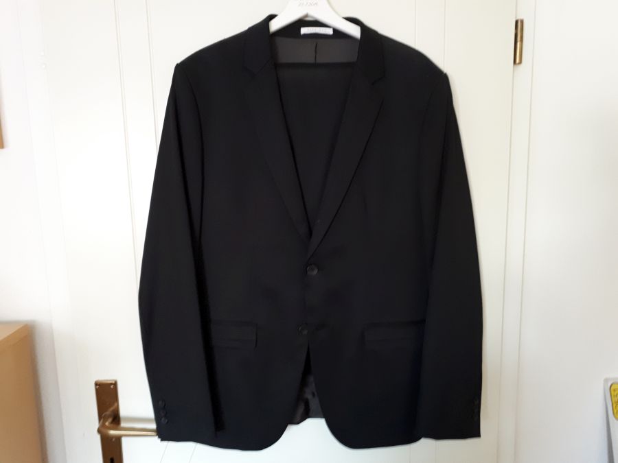 56. Moška obleka Zara, enkrat oblečena, črna barva; zgornji in spodnji del velikost 54 (blazer 54, obseg pasu 46) – 15 eur