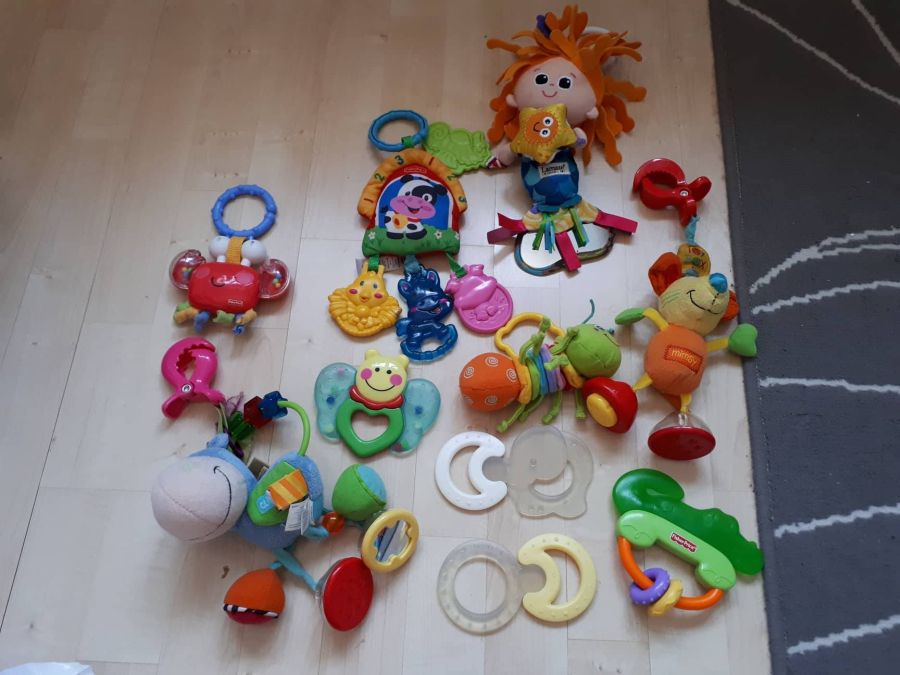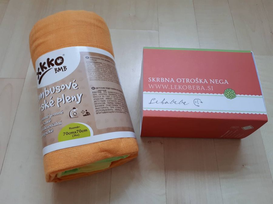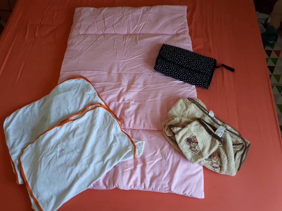 30. Odejica – 3 eur, dve prevleki za previjalno blazino Ikea – 2 eur/kos, brisačka za dojenčka – 2 eur, previjalna torbica za plenice H&M – 2 eur